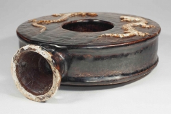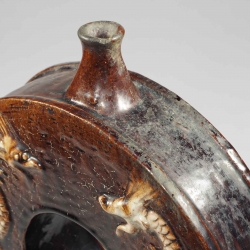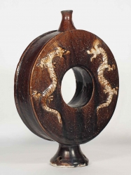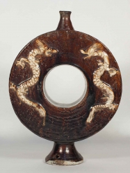 Very rare and very unusual black glaze coin form moon flask with two dragons. Old small chips at spout tip and base rim. No repair. |