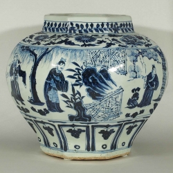 Underglaze blue jar with underglaze red Persian mark, Yuan Dynasty. | |